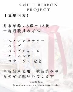 リボンアクセサリー寄付を募集しています。