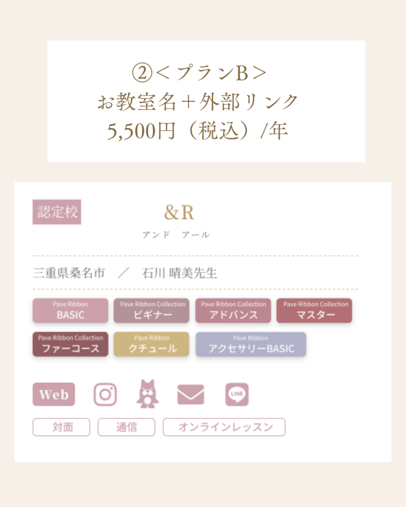 ②<プランB>お教室名+外部リンク:5,500円(税込)/年